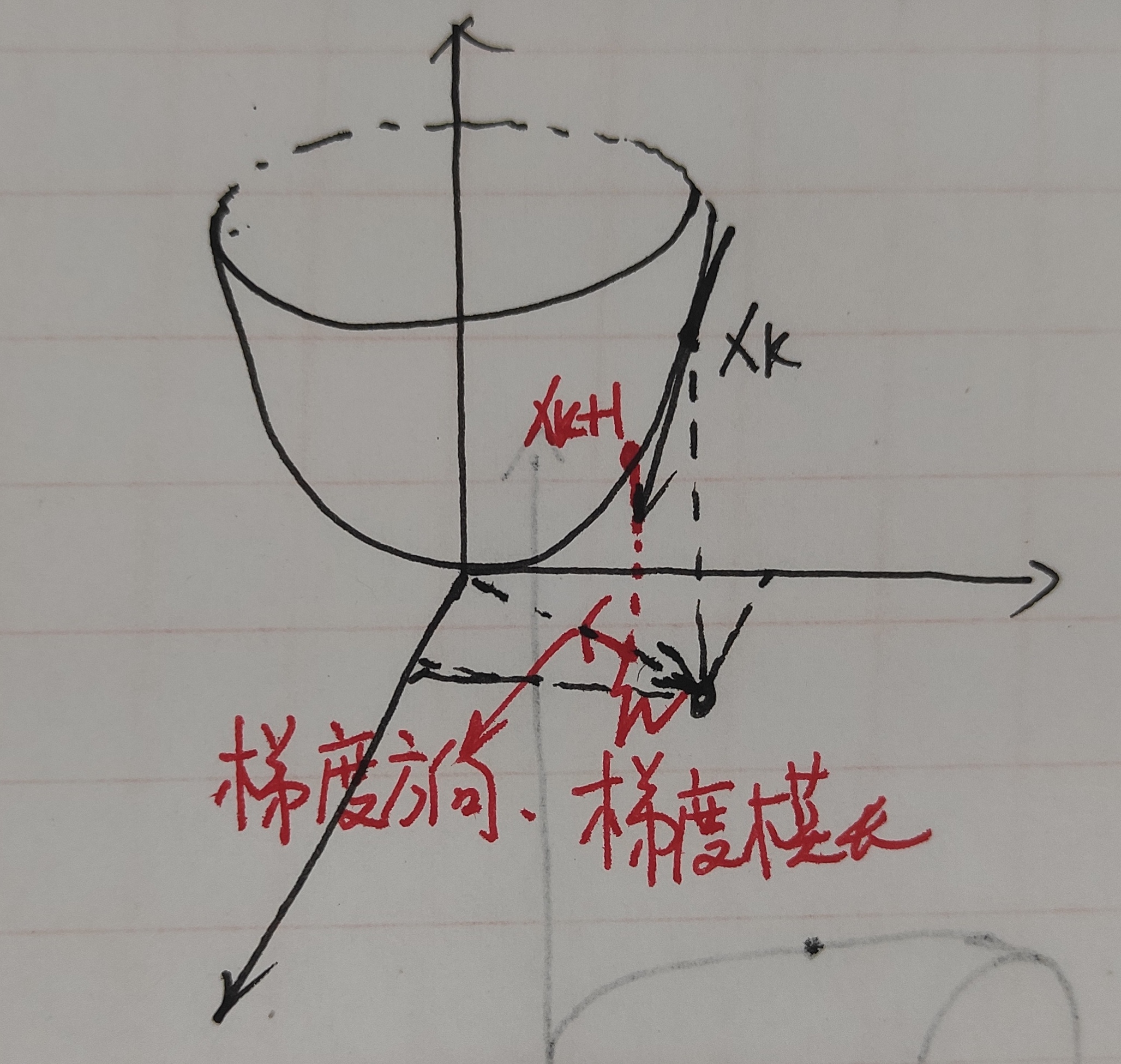 注意如果xk,xk+1,梯度是向量的话,那么就变成了向量的加法,不再只是一元的沿着x轴更新