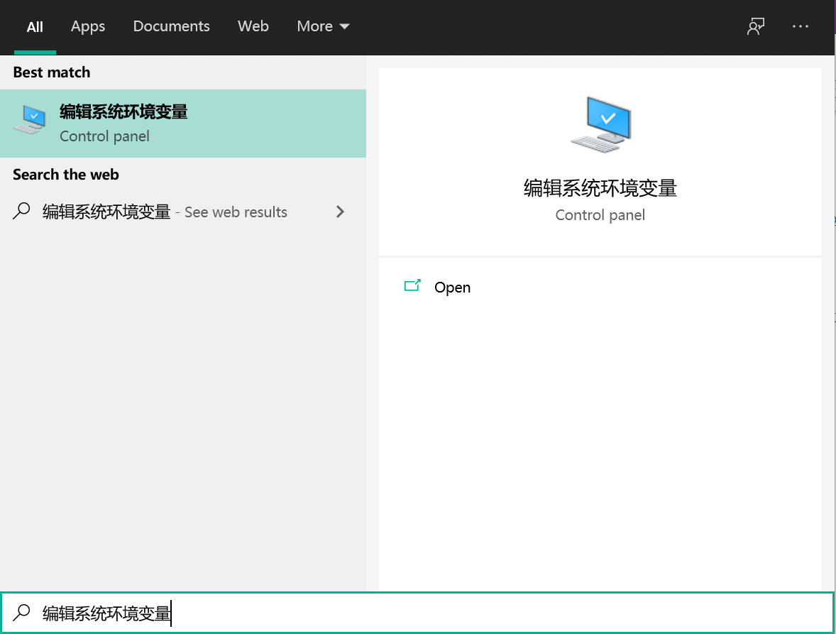 a. 首先,确认 python 安装完成后,在任务栏的搜索栏里输入“编辑系统环境变量”,打开设置界面