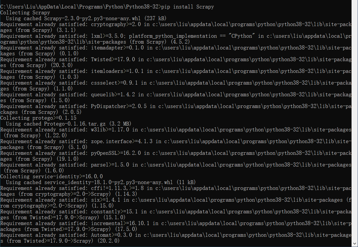 1 pip install scrapy