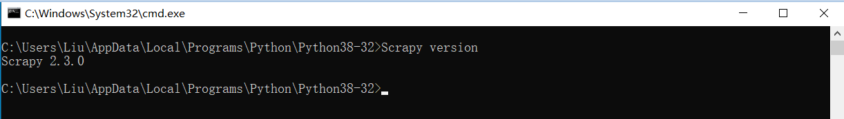 验证 scrapy 是否安装正确,只需在 cmd 中运行如下命令,若安装成功,会有版本号提示
