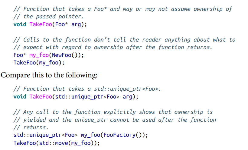 在后面的说明中也提到,Google 对于 smart pointer 一开始没有作为 style guide 而是在不断发展过程中认识到了 unique_ptr 的可读性和 move semantic 的重要意义。