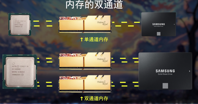 在组双通道时,我们要尽量保证两通道的内存容量相同,组成对称双通道