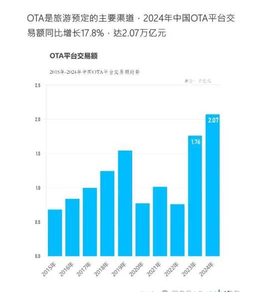 携程、去哪儿、飞猪等头部在线旅游平台(OTA)占据市场主导地位,2024年携程系市场份额达65%,美团和飞猪分别占20.6%和7.3%。