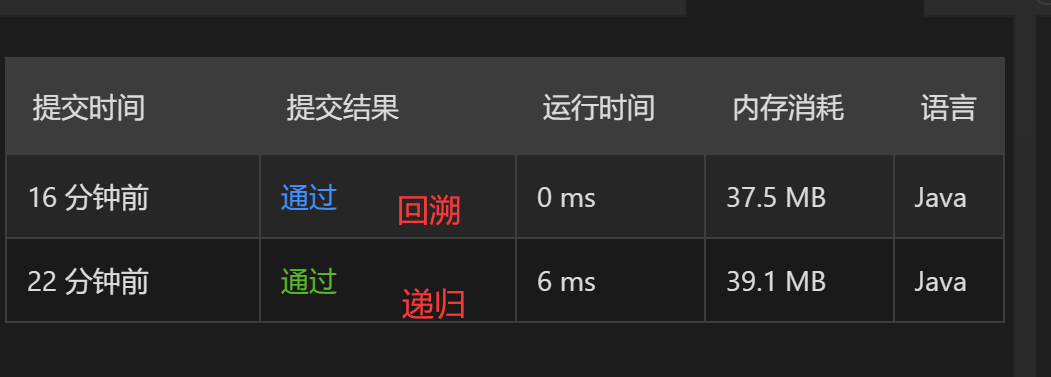 但时间复杂度很不理想,原因是String 用 + 来拼接牺牲了内存和时间,可以用回溯来优化