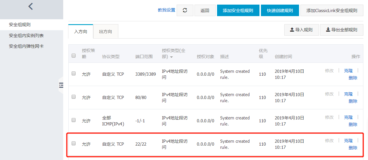 1.阿里云安全组规则是否启用