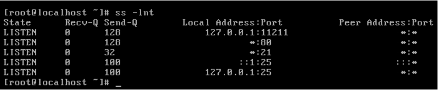 2.1 登陆到虚拟机查看目前服务器开放的端口:ss -lnt