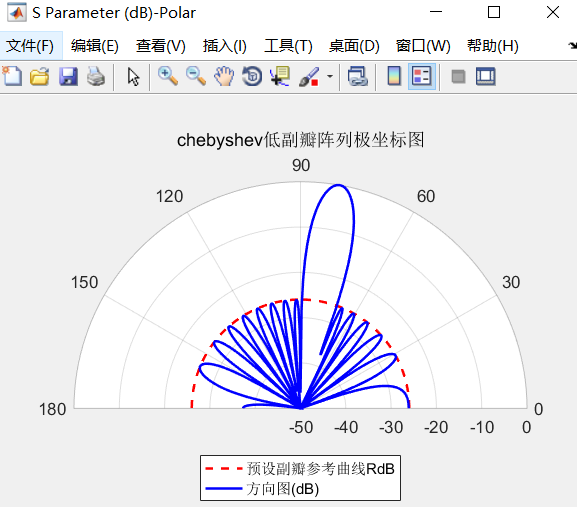 legend('预设副瓣参考曲线RdB','方向图(dB)')