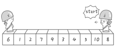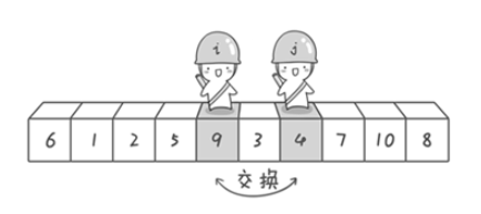 当然,实现这个算法需要使用一些技巧,如果我们直接取这个数不断移动未免太低效,设计两个指针,分别从队头和队尾进行遍历,一旦左边的指针发现数比选定的数大,而右边的数发现选定的数比左边的数小,那我们就把它们交换位置。