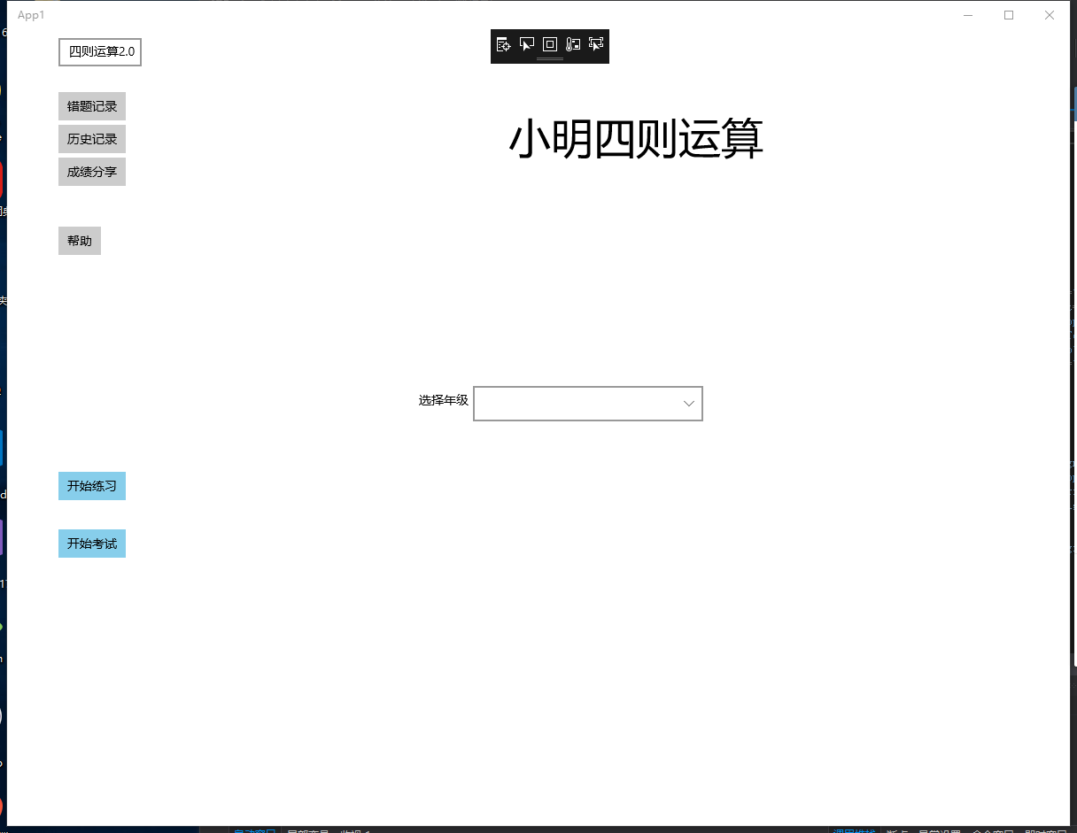 驾驶员是一个控制键盘鼠标的人,是一个非常接地气的位置,就是经常坐在凳子上,离地面很近,容易接地气。好的,现在要正式开始介绍我的工作任务了。起初我也不会用UWP,开发过程还在网上找了一些教程来学,也挺好的,两周时间也是可以勉强一只脚碰到入门。我与结对成员一起设计了UI的大部分界面和部分细节的构思,“小明四则运算”就算是在我们手里勉勉强强造了出来。虽然只有简单的几个控件,和一个精简的白色UI风格,还为控件添加清新的天空蓝背景颜色。