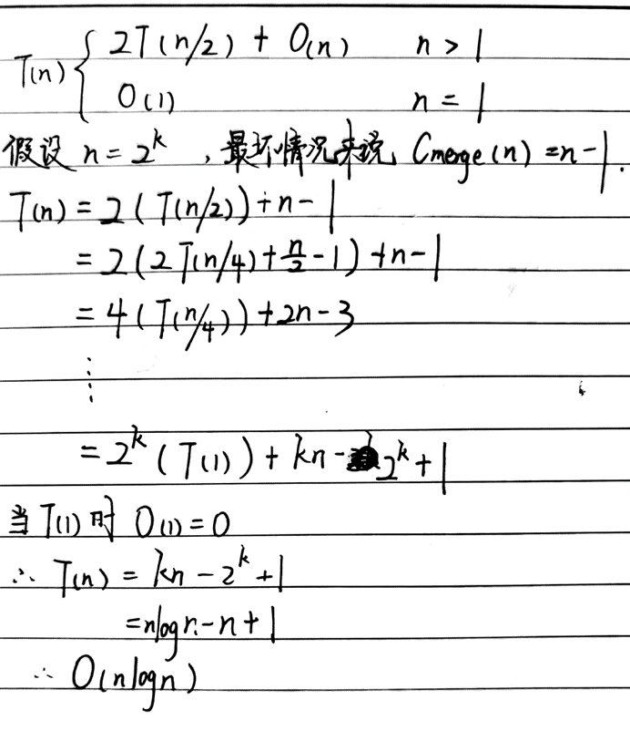 可以看出Merge函数是将两个数组合并,其时间复杂度为O(n)