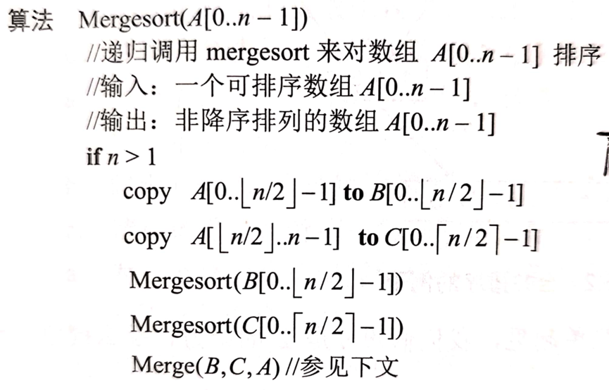 1) 将数组A[1,n]排序问题分解为A[1,n/2]和A[n/2+1,n]的排序问题
