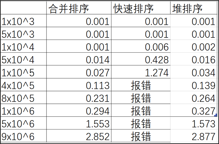 分析合并排序、快速排序、堆排序在不同规模数据、不同数据下的性能。