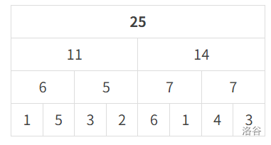 然后我们注意到每一层的第 \(2k\) 个都是可以通过上一层 \(-\) 下一层差分出来的,也就是不必维护,因此就可以把他们删掉。删掉后还剩 \(n\) 个数,将其按区间右端点从左到右的顺序排成一排。