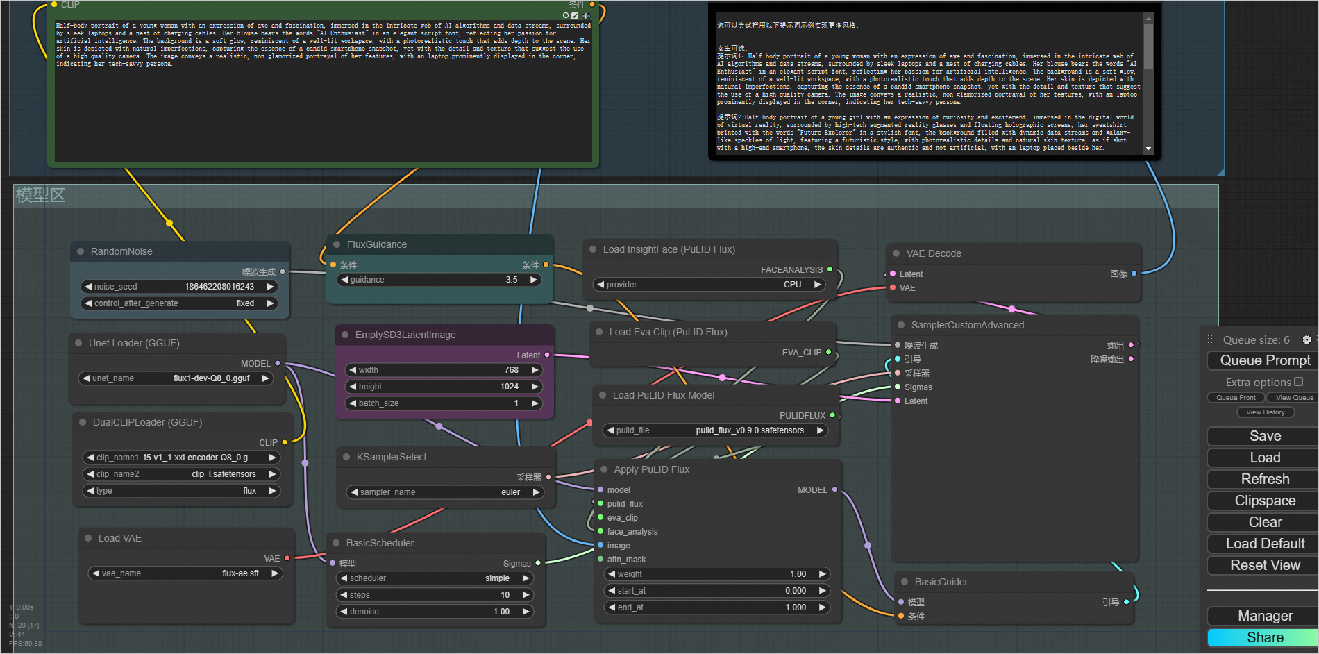 4.在页面右下方,直接单击 Queue Prompt,通过默认的提示词生成图像