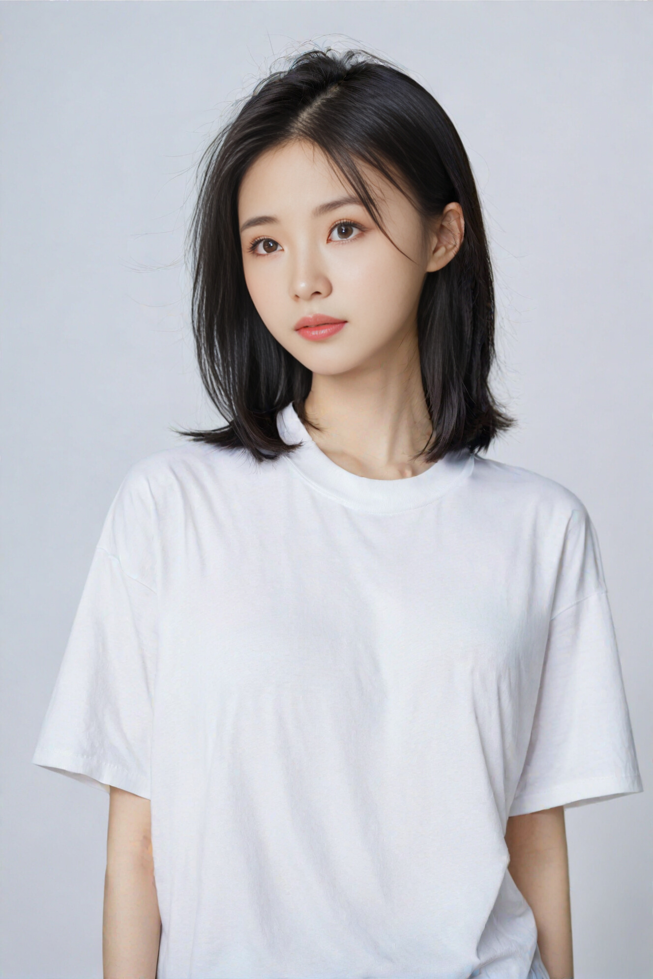 提示词1:Half-body portrait of a young woman with an expression of awe and fascination, immersed in the intricate web of AI algorithms and data streams, surrounded by sleek laptops and a nest of charging cables. Her blouse bears the words "AI Enthusiast" in an elegant script font, reflecting her passion for artificial intelligence. The background is a soft glow, reminiscent of a well-lit workspace, with a photorealistic touch that adds depth to the scene. Her skin is depicted with natural imperfections, capturing the essence of a candid smartphone snapshot, yet with the detail and texture that suggest the use of a high-quality camera. The image conveys a realistic, non-glamorized portrayal of her features, with an laptop prominently displayed in the corner, indicating her tech-savvy persona.