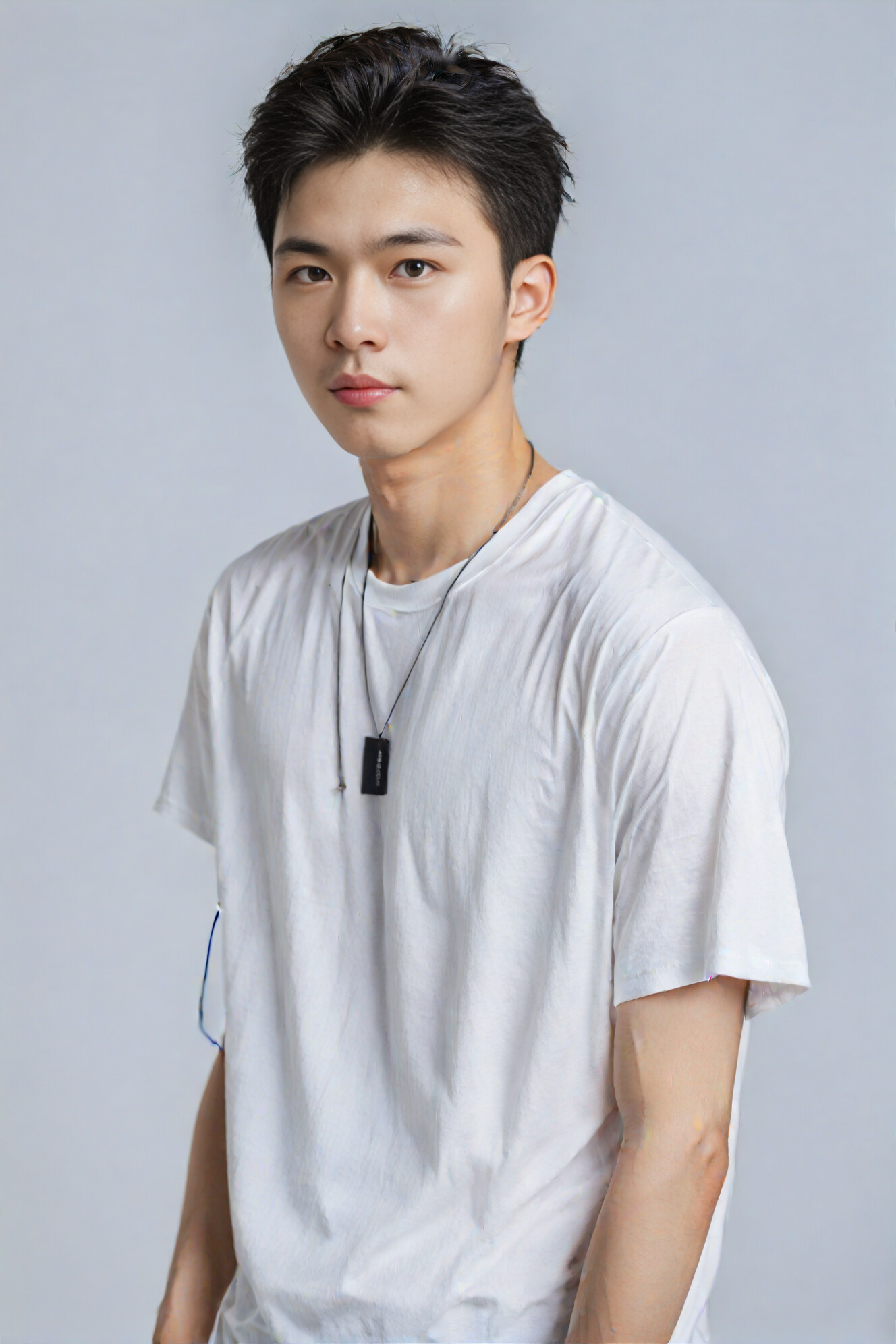 提示词2:Half-body portrait of a young man with a gaze that is resolute and brimming with passion, encircled by the halo of innovative technology, surrounded by multiple touch-screen monitors displaying intricate algorithms and system architectures, as well as a maze of data cables and charging wires. He dons a T-shirt imprinted with "Tech Pioneer" in modern, minimalist font, symbolizing his vanguard status in the realm of technology. The background flickers with the indicator lights of smart devices and flowing lines of code, presenting a science fiction style with a tinge of futurism. The image is rendered with photographic realism, skin textures are clearly visible, as if meticulously captured with a professional camera, with details so authentic they eschew any plastic appearance. Beside him lies gaming mouse, hinting at his love and pursuit of high-performance technology.