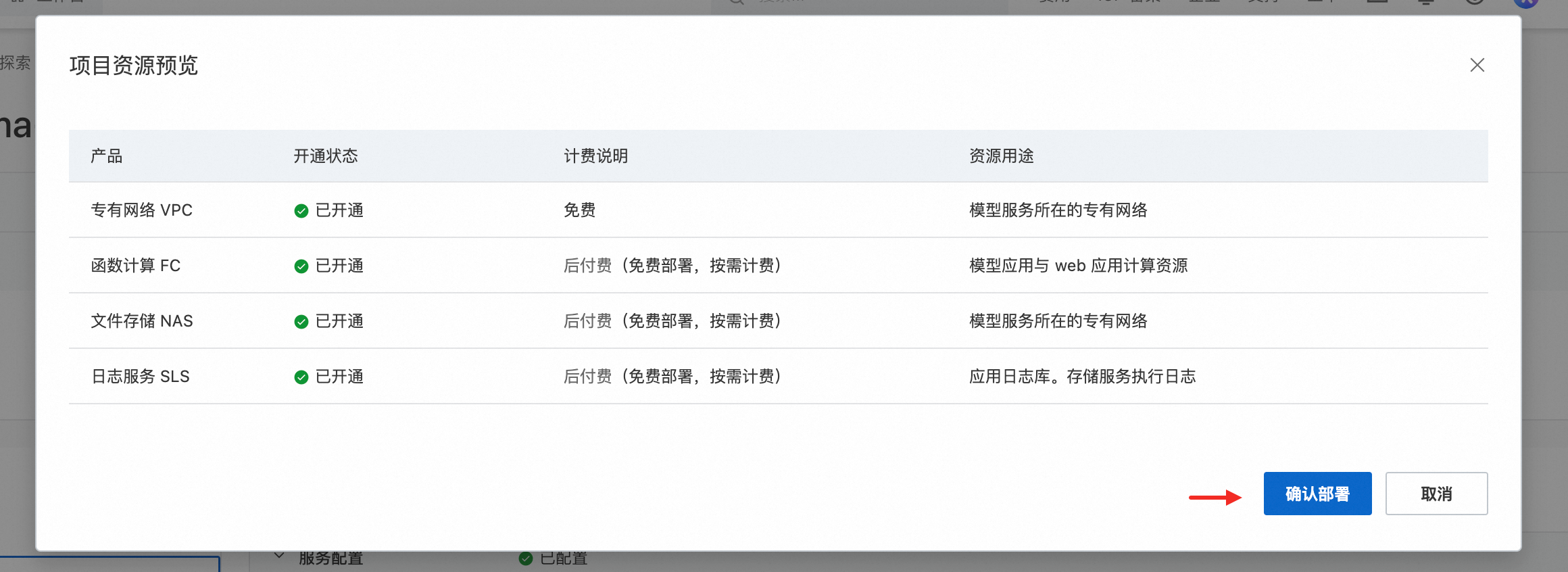 - 首次使用 FunctionAI 会自动跳转到访问控制快速授权页面,滚动到浏览器底部单击确认授权,等待授权结束后单击返回控制台。