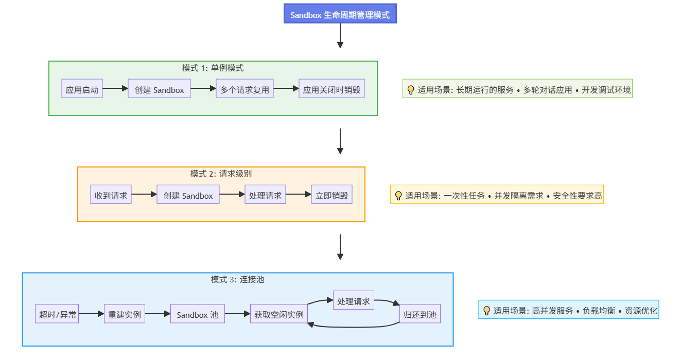 - 生命周期管理:三种 Sandbox 管理模式的选择和实现