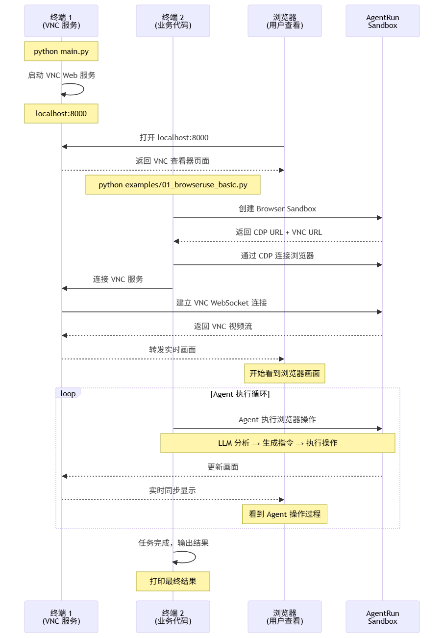 browser-use: BrowserUse 核心库,支持多模态 LLMagentrun-sdk[playwright,server]: AgentRun SDK,用于创建 Sandboxpython-dotenv: 环境变量管理