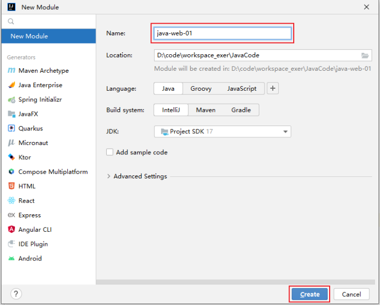 选择New Module,指明当前工程的名称: