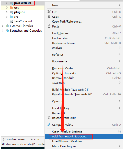 选中当前创建的工程,添加框架支持: