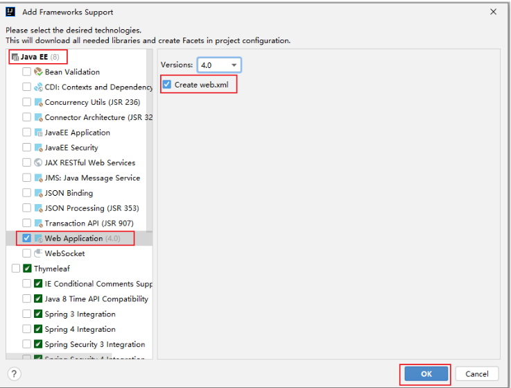 选择:Web Application,选择Create web.xml,如下: