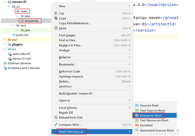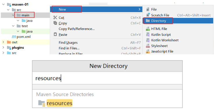新创建的maven 的java工程缺少相应的resources文件目录,需要创建如下: