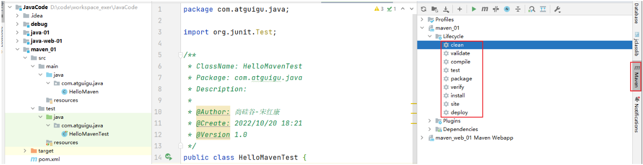 在src/test/java/test2_maven目录下新建文件HelloMavenTets