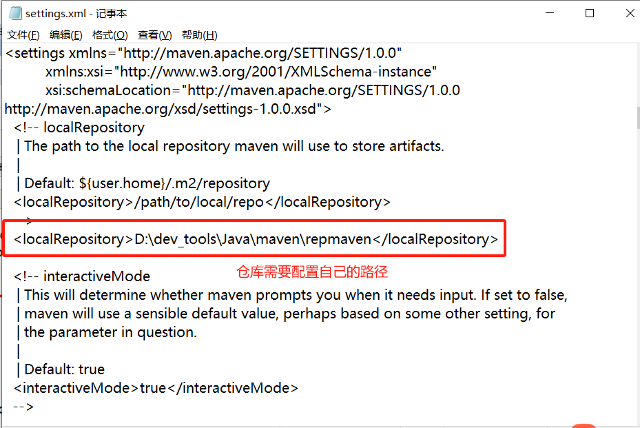 配置自己的仓库reposiroty。