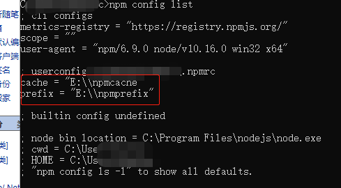 3、设置npm的全局模块存放的地址和缓存存放地址