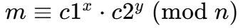 m = gmpy2.powmod(c1, s1, n) * gmpy2.powmod(c2, s2, n) % n