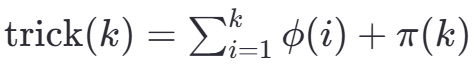 <font style="color:rgb(6, 6, 7);">trick(k)</font>表示为对于给定的k,首先计算从1到k每个整数i的欧拉函数值euler_phi(i)并将这些值加起来;然后加上不超过k的所有素数的数量π(k)