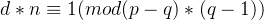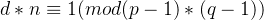 - 根据费马小定理,cd=m(n*d)=n(mod pq)