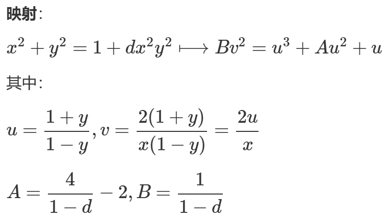 Edcurve通过换元映射,变换为常见的椭圆曲线的形式