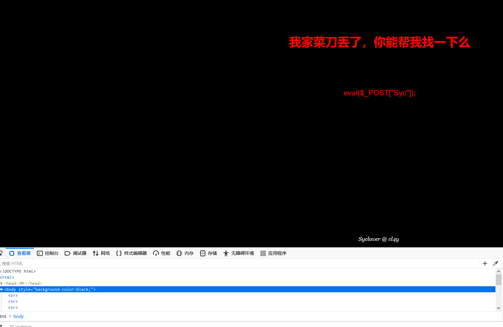 说正经的,页面名字是“白给的shell”、菜刀、eval($_POST["Syc"])那不如把网址和Syc放到菜刀里面试试?