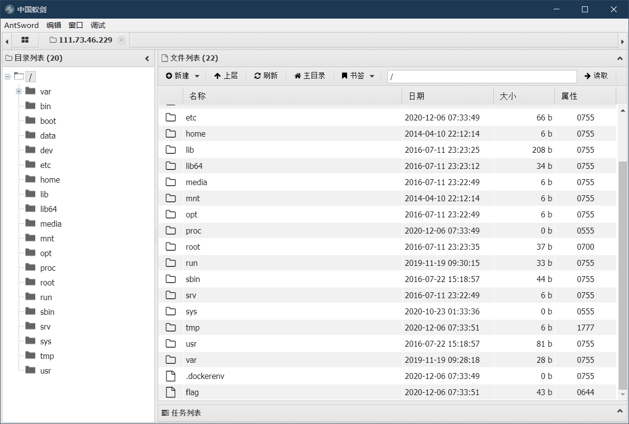 我用的是蚁剑,跟菜刀的功能没有太大区别,只是因为界面好看而已2333333