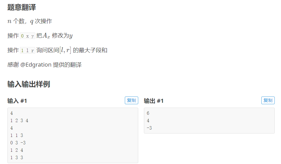 return;//更新区间最大子串和,上述式子不明白的去看上面的推导