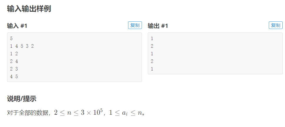 最后统计答案,就是进行一遍DFS,每个结点的权值即为该节点的子树的权值和(差分和前缀和互为逆运算)。但是这个题还有一个坑点,就是每次对两个点进行操作时,\(2 \sim (n-1)\)这个区间