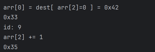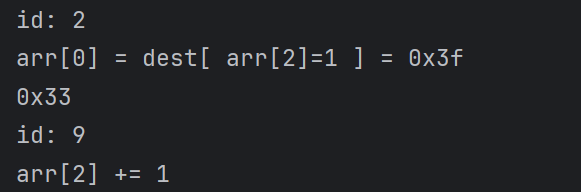 elif id==11: a = op[idx+1]; idx += 1 if res: if res > 0: idx += a-2 print(f"add 0x%x"%(a-2)) else: idx += -((a-2-1)^0xff) print(f"add 0x%x"%(-((a-2-1)^0xff)))- 将 dest,ptr 数组扒下来,然后将操作函数写完: