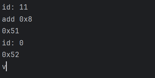 dest1 = [0x42, 0x3F, 0x53, 0x24, 0x2C, 0x66, 0x5D, 0x5F, 0x7F, 0x0A, 0x27, 0x39, 0x5F, 0x1D, 0x0B, 0x0F, 0x2E, 0x0 , 0x6B, 0x2B, 0x5B, 0x19, 0x5C, 0x41] print(len(dest1)) ptr = 0x405000 op=[0x03 ,0x00 ,0x00 ,0x00 ,0x00 ,0x00 ,0x03 ,0x00, 0x00 ,0x00 ,0x00 ,0x01 ,0x03 ,0x00 ,0x00 ,0x00, 0x00 ,0x02 ,0x03 ,0x47 ,0x00 ,0x00 ,0x00 ,0x03, 0x03 ,0x25 ,0x5B ,0x00 ,0x00 ,0x04 ,0x03 ,0x91, 0xE5 ,0x25 ,0x01 ,0x05 ,0x03 ,0x7F ,0x00 ,0x00, 0x00 ,0x06 ,0x03 ,0x18 ,0x00 ,0x00 ,0x00 ,0x07, 0x02 ,0x02 ,0x00 ,0x09 ,0x02 ,0x01 ,0x03 ,0x01, 0x06 ,0x04 ,0x01 ,0x04 ,0x05 ,0x01 ,0x08 ,0x06, 0x01 ,0x01 ,0x01 ,0x03 ,0x0A ,0x00 ,0x01 ,0x0B, 0x0A ,0x0A ,0x02 ,0x07 ,0x0B ,0xDE ,0x0C ,0x00,0x00,0x00,0x00,0x00] def func(id): global idx,res,flag,arr,op,dest,tag,aim print("id:",id) if id==0: flag = 0 elif id==1: a = op[idx+1]; b = op[idx+2]; idx += 2 arr[b] = arr[a] print(f"arr[%d] = arr[%d]"%(b,a)) elif id==2: a = op[idx+1]; b = op[idx+2]; idx += 2 arr[b] = dest[arr[a]] print(f"arr[%d] = dest[ arr[%d]=%d ] = 0x%x"%(b,a,arr[a],dest[arr[a]])) elif id==3: a = op[idx+1]; b = op[idx+2]; c = op[idx+3]; d = op[idx+4]; e = op[idx+5]; idx += 5 arr[e] = a+(b<<8)+(c<<16)+(d<<24) print(f"arr[%d] = 0x%x"%(e,a+(b<<8)+(c<<16)+(d<<24))) elif id==4: a = op[idx+1]; b = op[idx+2]; idx += 2 arr[b] += arr[a] print(f"arr[%d] += arr[%d]=0x%x ==> 0x%x"%(b,a,arr[a],arr[b])) elif id==5: a = op[idx+1]; b = op[idx+2]; idx += 2 arr[b] -= arr[a] elif id==6: a = op[idx+1]; b = op[idx+2]; idx += 2 arr[b] *= arr[a] print(f"arr[%d] *= arr[%d]=0x%x ==> 0x%x"%(b,a,arr[a],arr[b])) elif id==7: a = op[idx+1]; b = op[idx+2]; idx += 2 arr[b] //= arr[a] elif id==8: a = op[idx+1]; b = op[idx+2]; idx += 2 arr[b] %= arr[a] print(f"arr[%d] m= arr[%d]=0x%x ==> 0x%x"%(b,a,arr[a],arr[b])) elif id==9: a = op[idx+1]; idx += 1 arr[a] += 1 print(f"arr[%d] += 1"%(a)) elif id==10: a = op[idx+1]; b = op[idx+2]; idx += 2 res = arr[a] - arr[b] aim = arr[b] print(f"res = arr[%d]=0x%x - arr[%d]=0x%x ==> 0x%x"%(a,arr[a],b,arr[b],res)) elif id==11: a = op[idx+1]; idx += 1 if res: if res > 0: idx += a-2 print(f"add 0x%x"%(a-2)) else: idx += -((a-2-1)^0xff) print(f"add 0x%x"%(-((a-2-1)^0xff))) else: tag = 1 idx += 1 if __name__ == "__main__": dest = dest1.copy() tag = 1 idx = 0 flag = 1 res = 0 aim = 0 arr = [0 for i in range(10)] while flag and 0<=idx<=83: func(op[idx]) print(hex(idx)) -