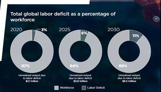 最近两年,人才短缺的现象越发明显,全球各大行业的头部企业首席执行官表示,正在加速对自动化机器人的应用,例如,人们开始使用具AI、机器学习能力的机器人处理日常重复数字化业务;工厂里大批量应用物理机器人,以补充到相应的制造岗位中。可以预见,随着全球人才缺口的不断加深,机器人应用的范围也将越来越广,机器人正在接管这个忙碌的世界。