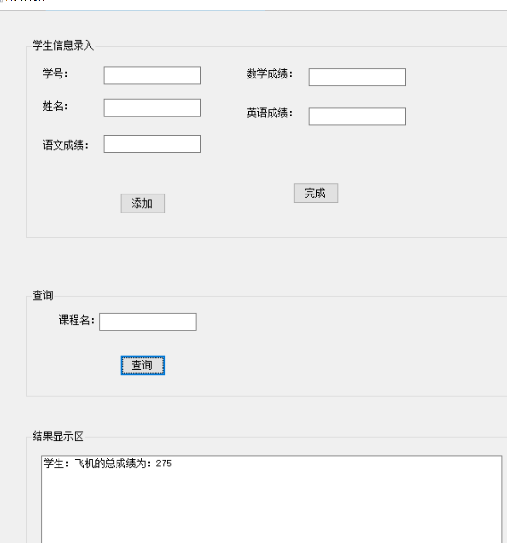 (1)能根据姓名查询指定学生的总成绩