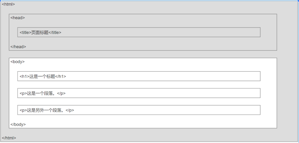 只有 <body> 区域 (白色部分) 才会在浏览器中显示