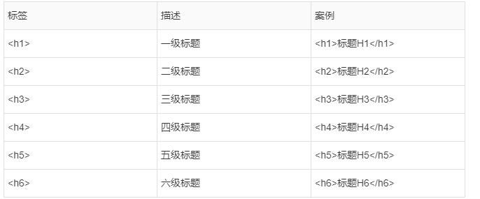 页面中文本标题(Heading)是通过 <h1> - <h6>标签进行定义的,从大到小:<h1> - <h6>。