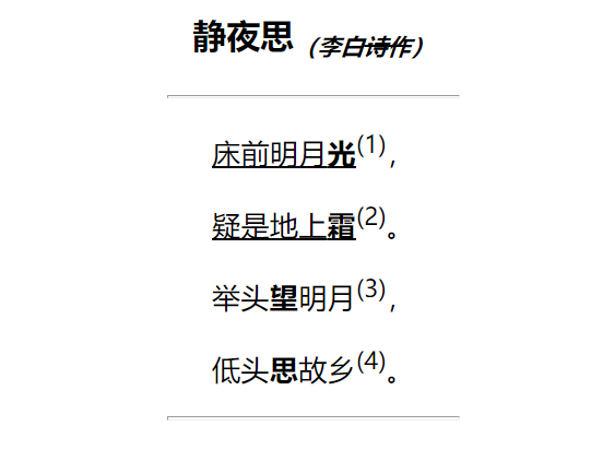 HTML的标签可以嵌套,嵌套的时候往往外层标签的属性会作用于内层标签,利用此特性可以使用具有居中排版的标签来控制其内部的标签居中显示。