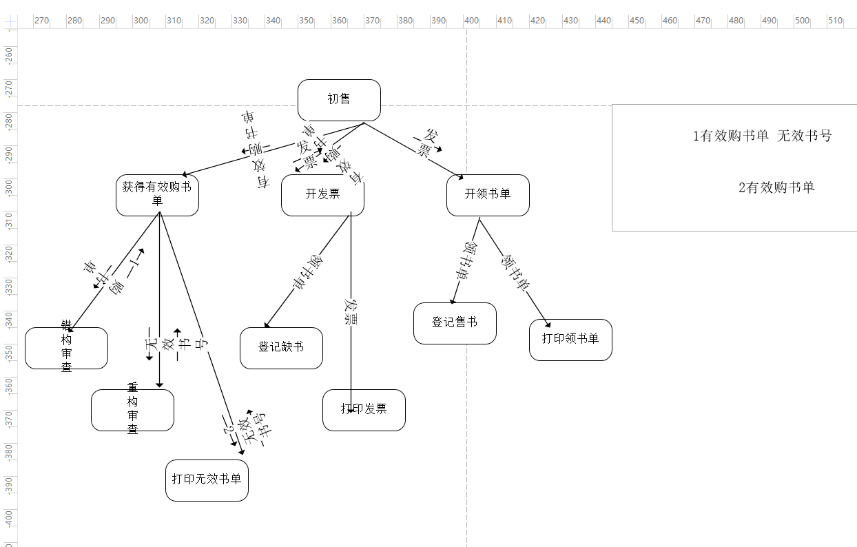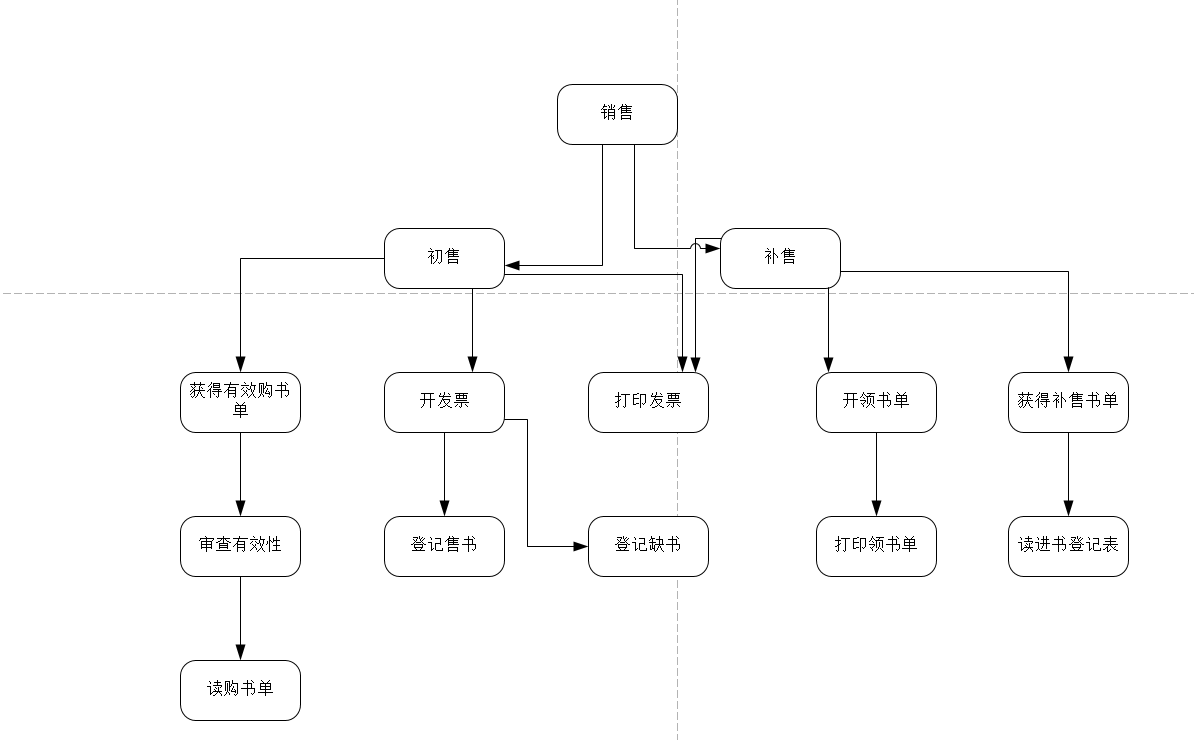销售系统的工作过程为:首先由教师或学生提交购书单,经教材发行人员审核是有效购书单后,开发票、登记并返给教师或学生领