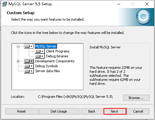 1、双击运行mysql-5.5.15-win32.msi –> Next