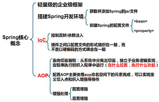 又翻译成通知,定义了切面是什么以及何时使用,描述了切面要完成的工作和何时需要执行这个工作。是织入到目标类连接点上的一段程序代码。增强包含了用于添加到目标连接点上的一段执行逻辑,又包含了用于定位连接点的方位信息。(所以spring提供的增强接口都是带方位名:BeforeAdvice(表示方法调用前的位置)、AfterReturninAdvice(表示访问返回后的位置)、ThrowAdvice等等,所以只有结合切点和增强两者一起才能确定特定的连接点并实施增强逻辑)。增强又分前置增强、后置增强、环绕增强、异常抛出增强、最终增强等类型。