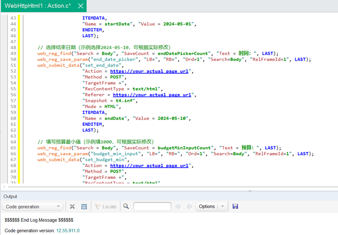 将脚本录制中,一些输入如目的地,预算等等,由静态改为动态变化的。