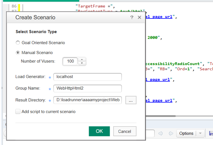 设置为手动测试,并发访问数量为100人
